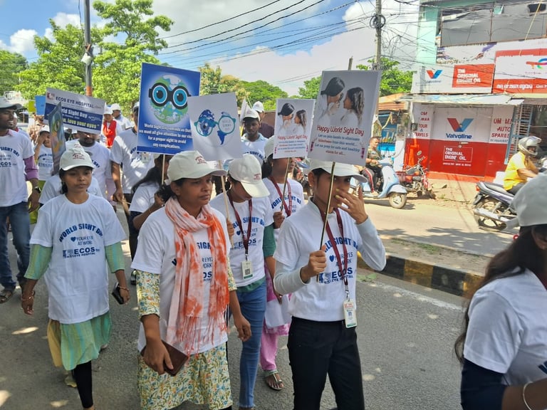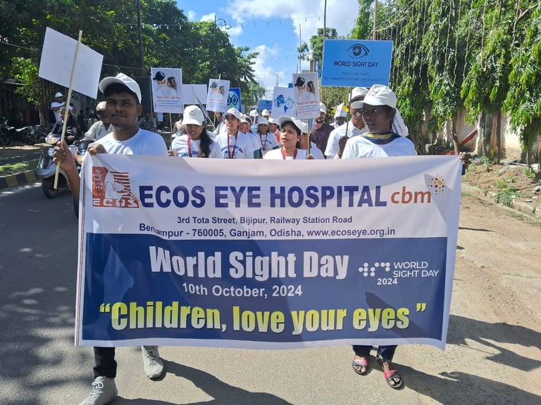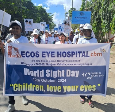 On October 10, 2024, ECOS Eye Hospital commemorated World Sight Day with a series of activities. The day began with an awareness rally held within Berhampur Town at 9 AM, emphasizing the importance of accessible, affordable, and quality eye care for all. The theme of World Sight Day 2024, "Children, Love Your Eyes," served as the guiding principle for the event.