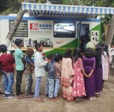 A key component of the day was community camp and Mobile van camp organized in the Berhampur area. This outreach initiative provided free eye screenings to a diverse population, including children and adults from the surrounding communities. A total of 87 individuals were screened for potential eye-related disorders, such as refractive errors, cataracts, glaucoma, and other common eye conditions.